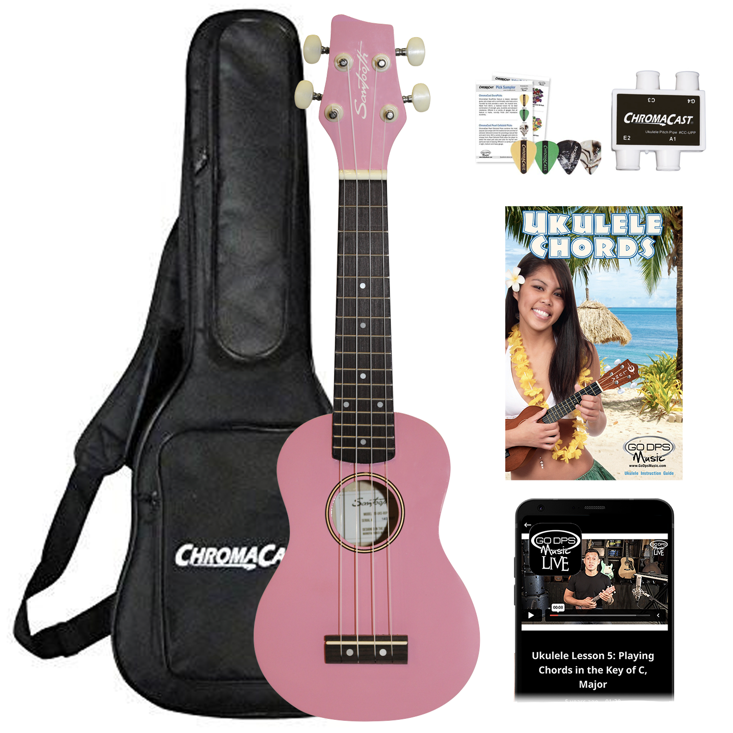 - Includes: Nylon Ukulele Bag, Pitch Pipe & Quick Start Guide