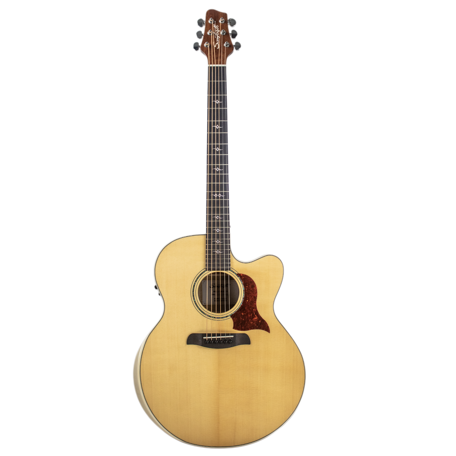 Sawtooth Myrtlewood Jumbo Cutaway 24 Fret Acoustic Electric Guitar with Spruce Top
